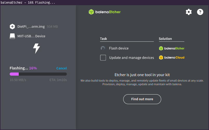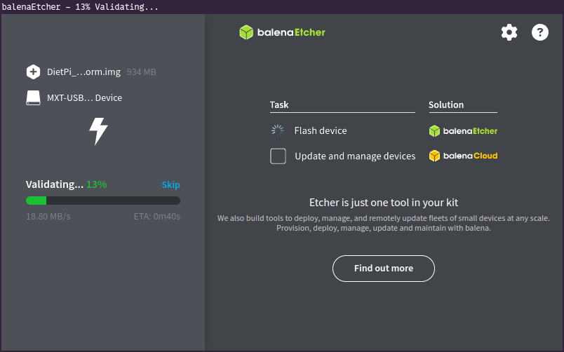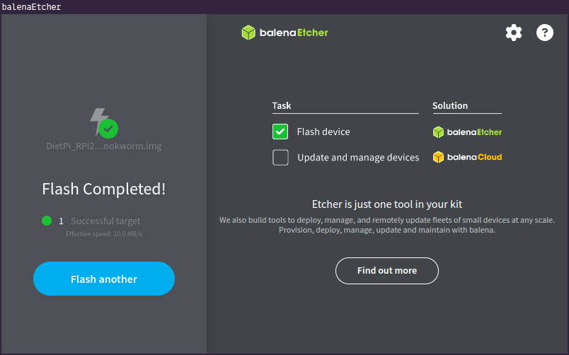 ddcommand (Linux/macOS) to write the image to an SD card.- Start BalenaEtcher