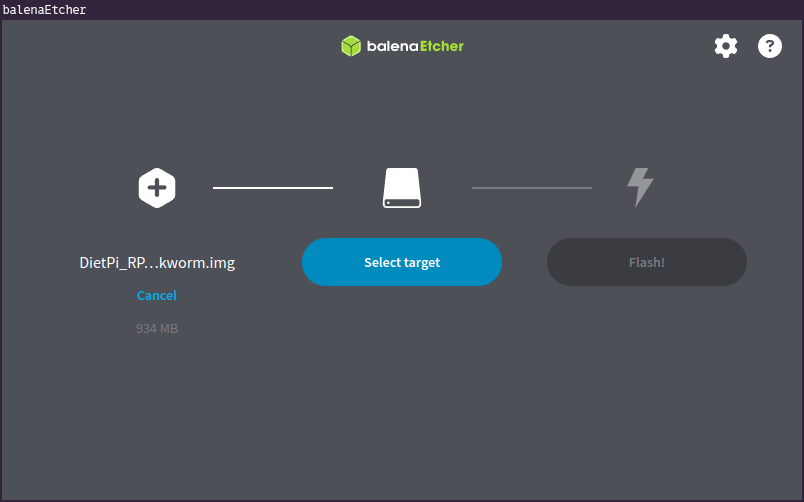 - Select your the file you downloaded (DietPi_RPi234-ARMv8-Bookworm.img.xz in my case)